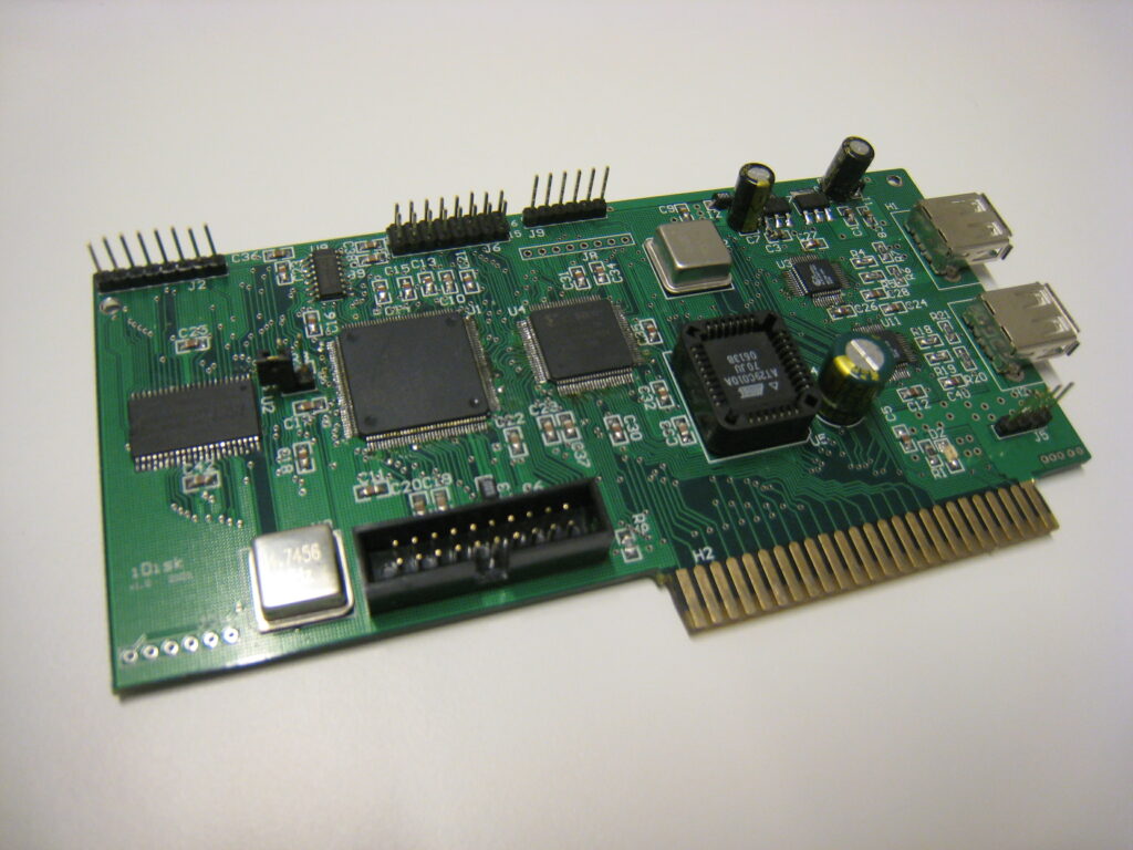 The announcement on comp.sys.apple2 of the availability of the iDisk card for the Apple II, the first dual USB Bluetooth/Disk controller/Disk image archive for our platform, has been more than surprising as nobody was aware of it. The card is divided into two parts: one that fits into the computer which contains the two USB ports and the second external card which offers disk switching operations.
