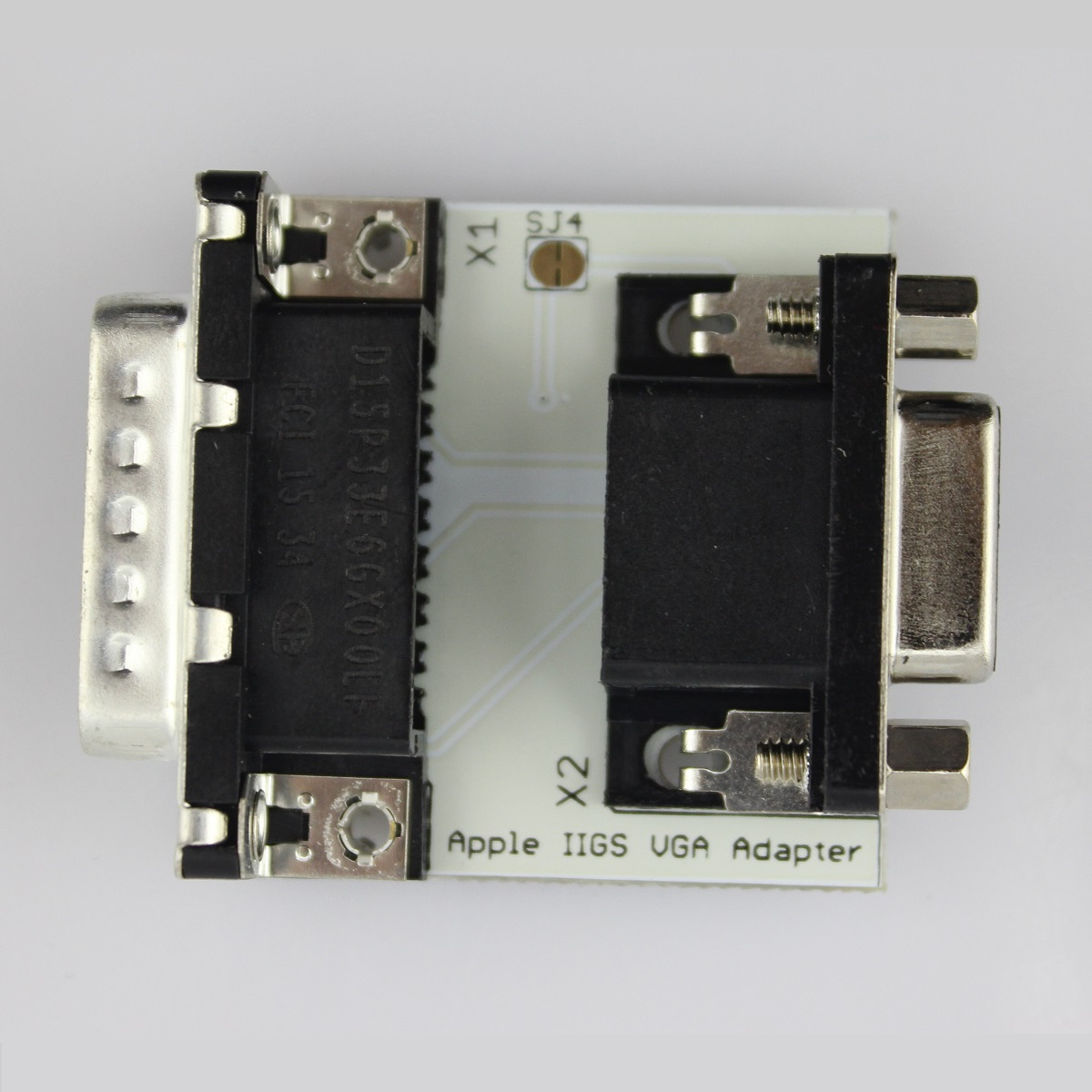 Mountain View, CA, August 26, 2016 – Manila Gear, makers of the 4soniq quadraphonic sound card for the Apple IIGS, today announced the Apple IIGS VGA Adapter. The adapter lets you connect your Apple IIGS to a VGA monitor that supports 15 kHz. It consists of a DA-15 to DE-15 adapter with an integrated sync separator.