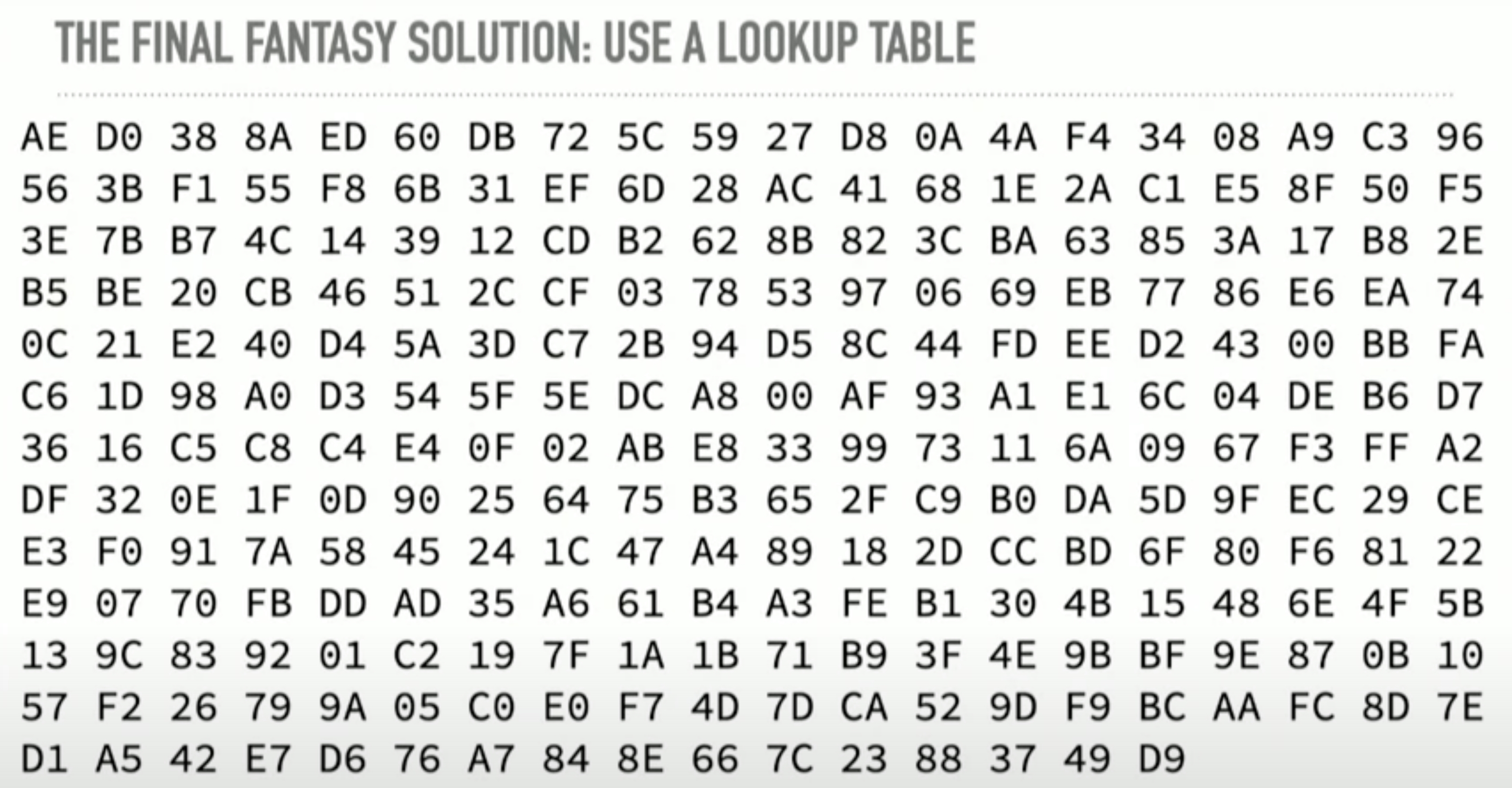 One of my favorite fun facts about Final Fantasy is how Gebelli went about calculating “random” numbers: he hardcoded a table of 256 numbers for the game to use in sequential order.