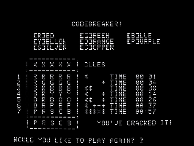 Egan Ford releases Codebreaker! puzzle game for Apple 1