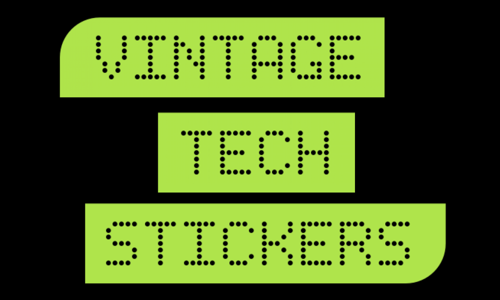 Kay Savetz’s reproductions of classic logos and stickers, such as Memorex and Beagle Bros.