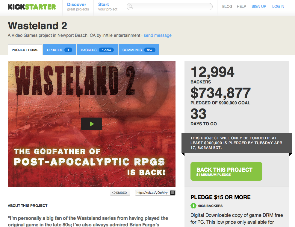 Last month, A2Central brought you the news that Brian Fargo, the creative force behind the original Wasteland, was considering a sequel for modern platforms and was looking at Kickstarter to crowd-source funding for the project. Ă‚ The Wasteland 2 Kickstarter campaign, which is seeking $900,000 in pledged funds by April 17, 2012, went live yesterday and […]